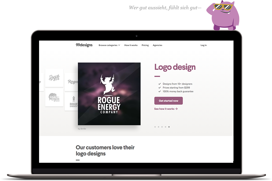 Aber bei 99designs geht es nicht nur um uns, sondern auch um unsere Kunden und Designer. Mit unserem neuen Look fokussieren wir weiterhin den Erfolg und Spaß, den Design uns allen ermöglicht.