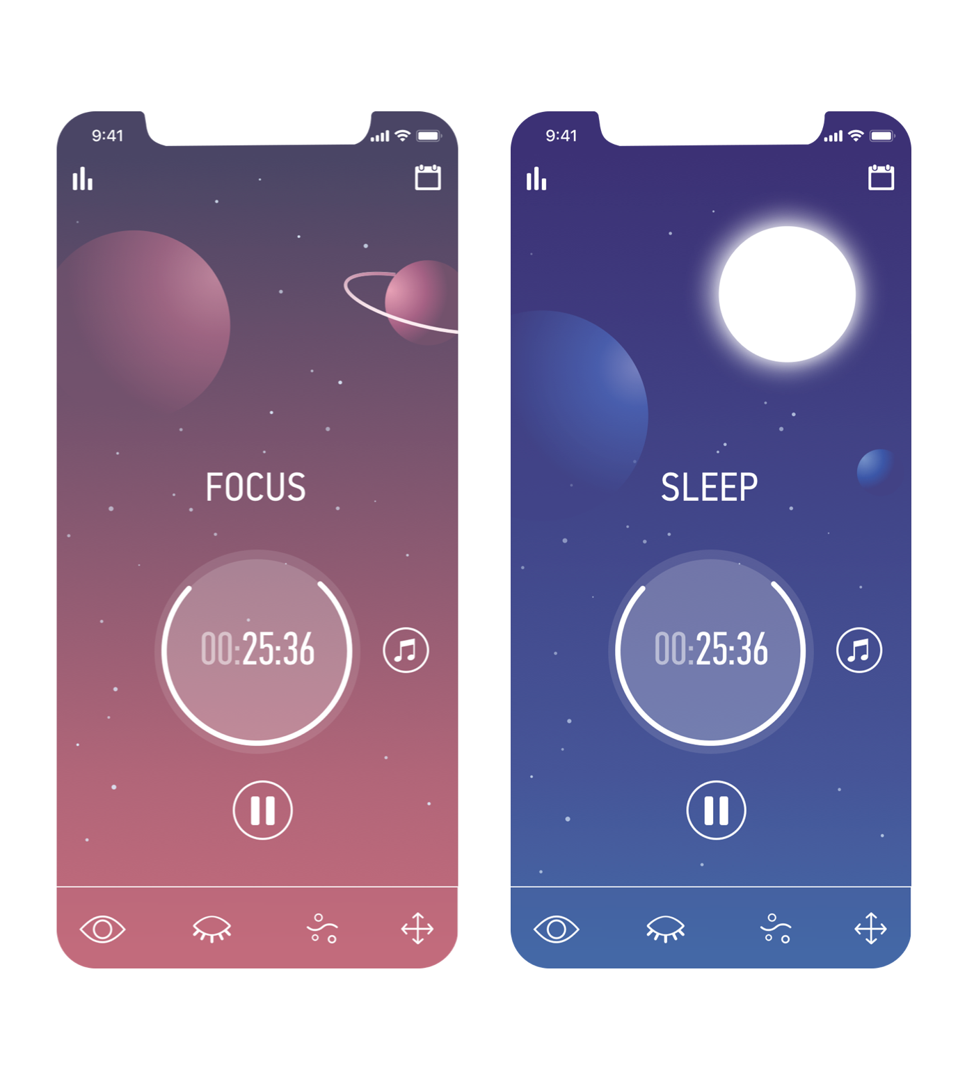 Im Wettbewerb Interface Designs for Timer/Meditation app